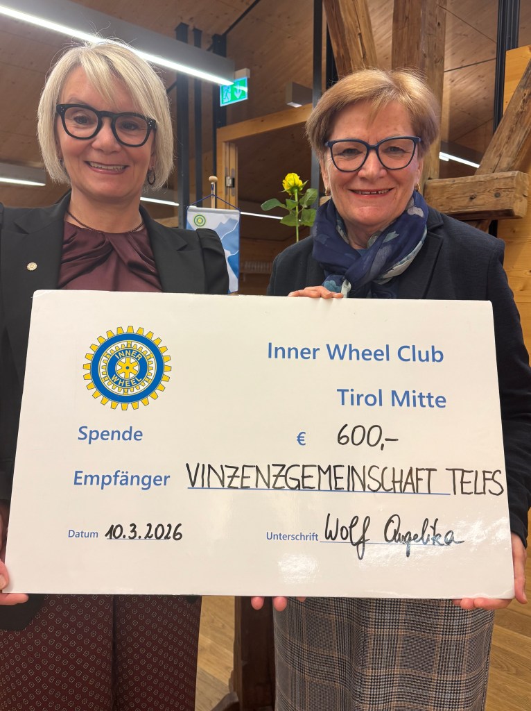 Foto 2: Doris Stippler, Obfrau Vinzenzgemeinschaft Telfs, Angelika Wolf, Präsidentin 2025/2026 IWC Tirol Mitte