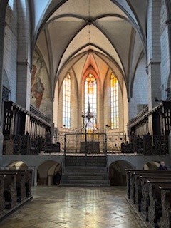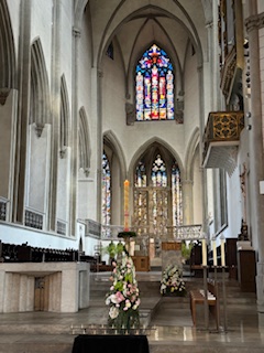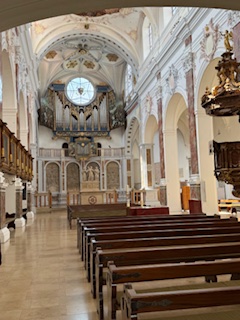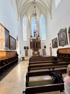 Unsere Führung beinhaltete die Jesuitenkirche, einem architektonischen Meisterwerk, das nicht nur durch seine kunstvolle Gestaltung beeindruckt, sondern auch durch seine spirituelle Atmosphäre. Dr. Marte erläuterte die Bedeutung der einzelnen Altäre, Gemälde und Kunstwerke und brachte uns dabei die Symbolik und religiöse Bedeutung dieser Kostbarkeiten näher. Wir erfuhren auch, wie der Orden heute versucht, Spiritualität und Zeitgeschehen zu verbinden und sich aktuellen Herausforderungen, etwa in der Bildungsarbeit oder im sozialen Engagement, zu stellen.